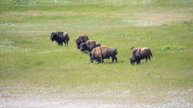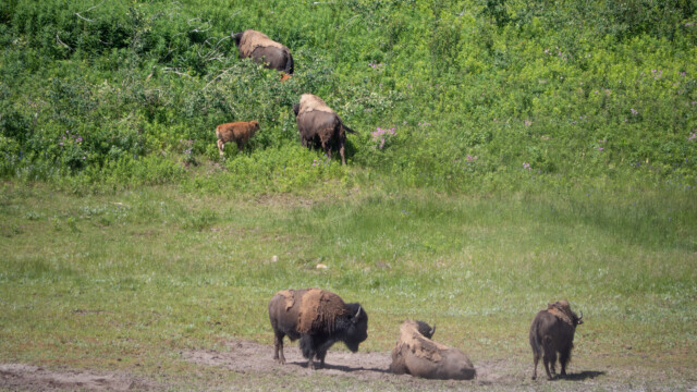 Auch hier zogen frĂĽher Millionen von Bisons durch. Doch die europäischen Einwanderer dezimierten diese Tiere mit ihren Schusswaffen gnadenlos. Ironie des Schicksals: Man brauchte am Anfang vorallem das Phosphor der Bison-Knochen fĂĽr die Herstellung von Schiesspulver. Am Anfang des 20. Jh. lebten nur noch etwa 6’000 Tiere, die Ureinwohner, hier die Blackfoot-Indianer, waren des Hauptbestandteils ihres Lebens beraubt. Dank verschiedenen Aufzuchtprogrammen gibt es heute wieder rund 200’000 Bisons in Nordamerika, auch hier im Park leben 8 StĂĽck.