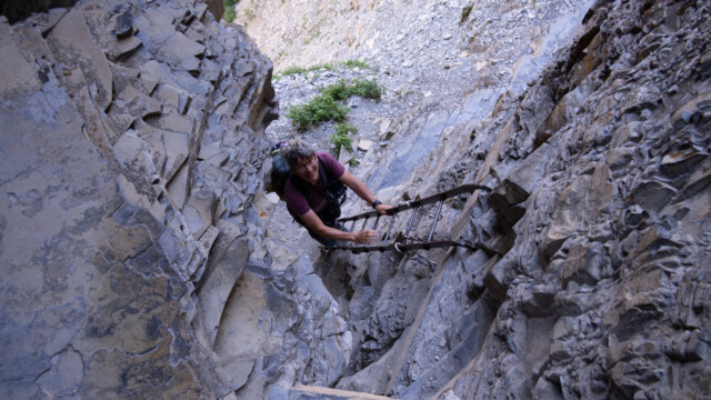 Die Wanderung ist abwechslungsreich, so muss man zuerst mit dem Boot ĂĽber den See an den Startpunkt fahren. Die ersten Kilometer fĂĽhren allerdings durch Wald, diesmal aber grĂĽn und nicht abgebrannt, deshalb sieht man auch nicht so viel. Nach etwa 7.5 km gibt es dann eine Art Klettersteig sowie einen kaum mehr als ein Meter hohen Tunnel. Aber die Juroren von National Geographic mĂĽssten mal in die Schweiz kommen, dort gibt es unserer Meinung nach schönere Klettersteige, z.Bsp. in Kandersteg…