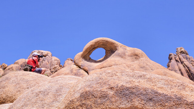 Es gibt sehr schöne braune Granitfelsen, doch was uns noch mehr interessiert sind die Arches, die Steinbrücken. Wir sind mehrere Stunden unterwegs um diese zu erwandern, meistens sind wir alleine unterwegs.