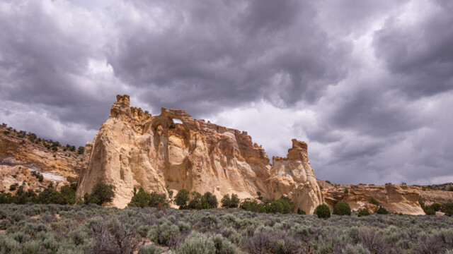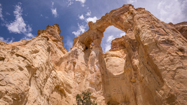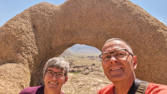 Wir fahren zuerst zu den Cottenwood Creek Narrows und dann zur Grosvenor Double Arch. Wir kommen mit zwei amerikanischen Frauen ins Gespräch und als sie erfahren, dass wir mit unserem eigenen Fahrzeug aus Europa angereist sind, sind ihre Fragen und ihr Redefluss kaum mehr zu stoppen… Aber es ist interessant, ihren Pensionierungsträumen zuzuhören und wir versuchen, ihre vielen Fragen zu beantworten.