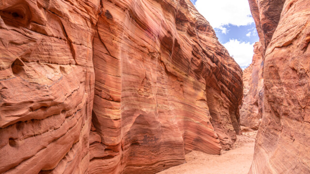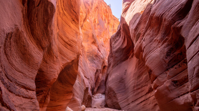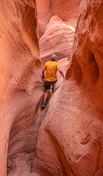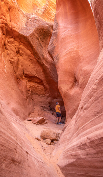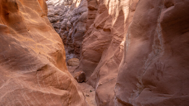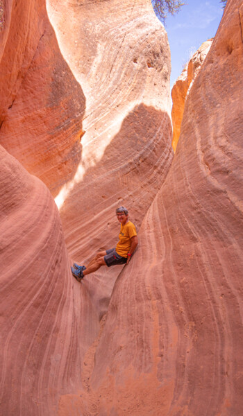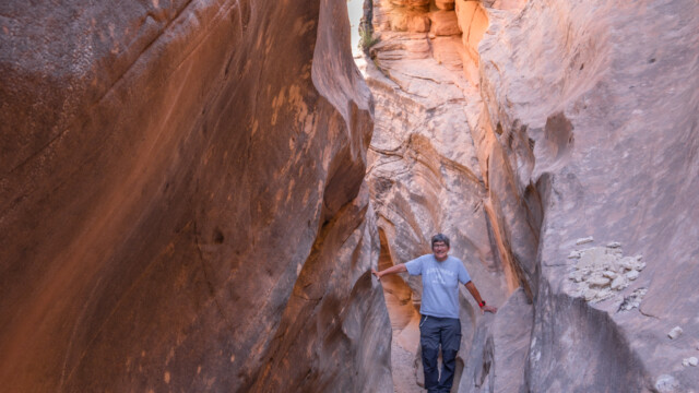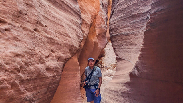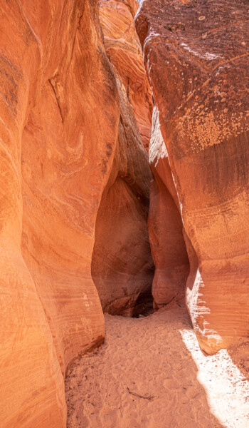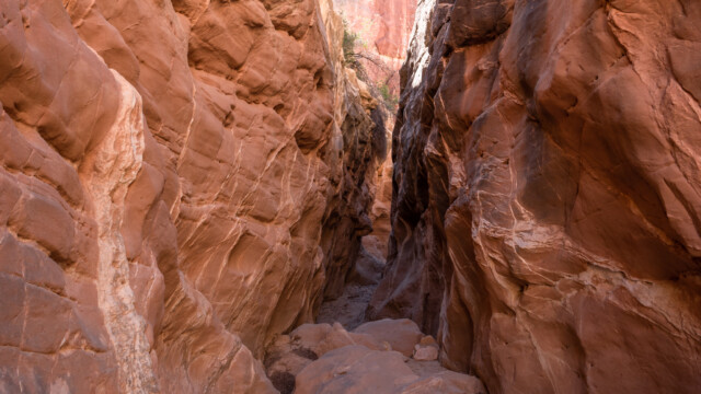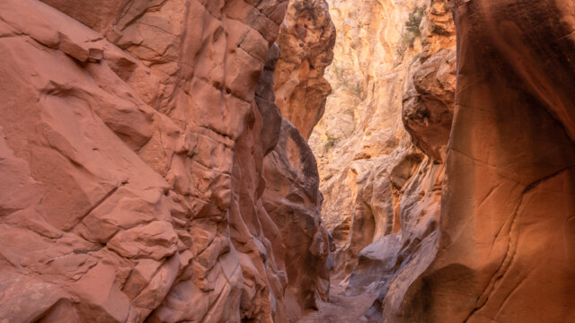 Diese liegen an der Cottenwood Canyon Road, die ich weiter unten noch beschreibe. Wir durchwanderten einerseits die Narrows, die vom North Trailhead zum South Trailhead führen und nicht sehr spannend sind. Doch davor wanderten wir vom North Trailhead den Cottenwood Creek in nördliche Richtung und auch hier entdeckten wir einige schöne schmale Passagen.