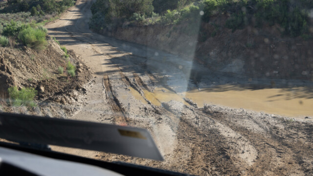 Am nächsten Morgen ist es klar und wir fahren weiter. Die Strasse ist an einigen Stellen immer noch nass und schlipfrig, doch dank 4×4 befahrbar.