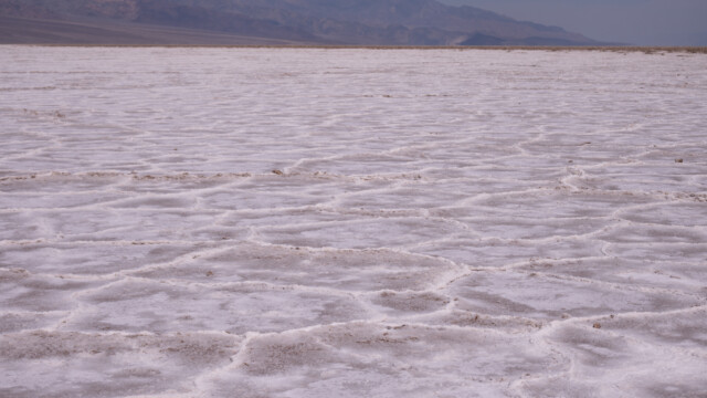 Weiter geht es zum Badwater Basin, dem tiefsten Punkt des Parks und auch des nordamerikanischen Kontinentes (Nord- und Südamerika gelten als zwei Kontinente). Je nach Quelle liegt dieser Punkt zwischen 85 und 86m unter dem Meeresspiegel liegt. Dies wird auf dem Parkplatz sehr gut illustriert, wo auf Höhe des Meeresspiegel ein Schild im Hügel montiert ist.