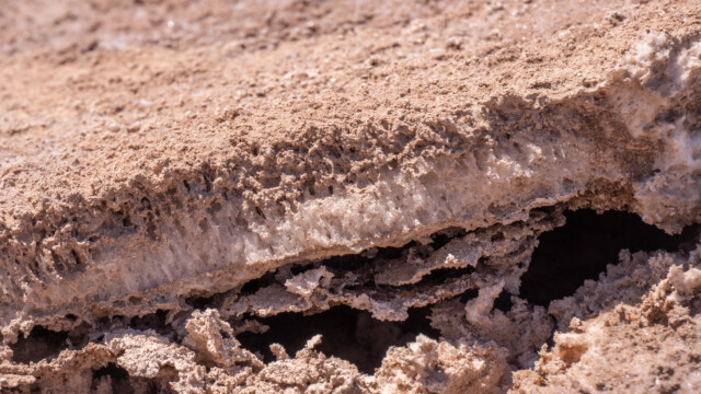 Interessant ist auch, dass es auf dem «braunen» Land Salzpfannen hat: Als wir genau hinschauen sehen wir unter der Erde eine Salzschicht, d.h. je nach Wasserstand reichen diese Salzpfannen mehr oder weniger weit ans Ufer.