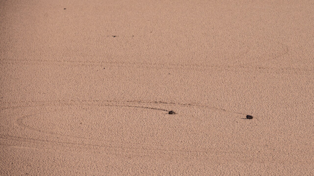 Als Grund für die Bewegung der Steine auf dem ausgetrockneten See werden einerseits die hier sehr starken Winden angegeben, zusätzlich muss der Boden aber noch mit einer glitschigen Algenschicht überzogen sein oder die Oberfläche muss dünn gefroren sein, resp. gerade am antauen.