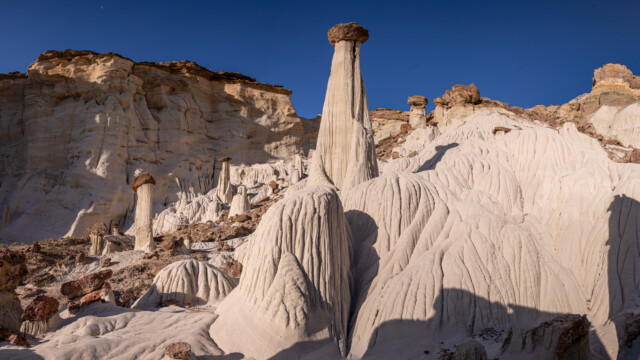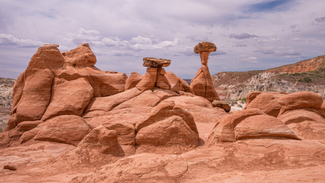 Wir besuchen an zwei Orten solch schöne Naturwunder, wo der Hut aus härterem Material besteht, als der übrige Teil der Säule und deshalb weniger schnell erodiert.