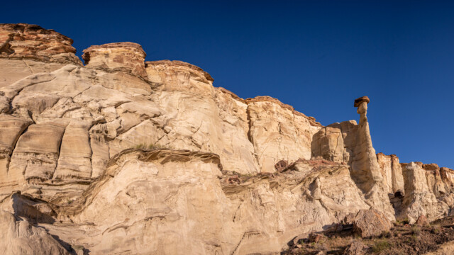 Leider will das Wetter nicht so, wie die verschiedenen Vorhersagemodell prognostizieren und es ziehen immer wieder Wolken vorbei. Dabei hätte es hier unzählig Säulen und Hoodoos, mit denen man «spielen» könnte…