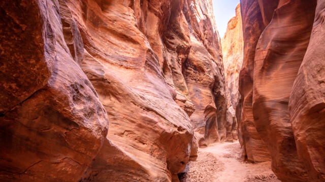 Als erstes besuchen wir den Elkheart Slot-Canyon, der östlich des Zion NP liegt. Die Wanderung zum Slot-Canyon führt über einen sandigen Weg. Der Slot Canyon ist zwar nur kurz, aber wunderschön.