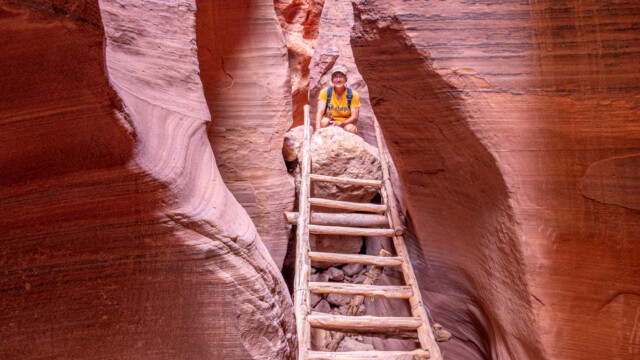 Danach besuchen wir in der Region Paria Canyon–Vermilion Cliffs Wilderness Area den Wire Pass Trail mit dem gleichnamigen Slot Canyon, daran anschliessend gibt es im Buckskin Gulch Trail sowie im Upper Buckskin Trail noch weitere Slot Canyons, die ebenfalls wunderschön sind, aktuell teilweise aber unter Wasser. Für dieses Gebiet benötigen wir nur einen Tagespass, der sechs Dollar kostet und den wir einfach online beziehen können und mit dem wir sogar auf dem Parkplatz übernachten können. Wir dürfen uns frei bewegen, je weiter wir wandern umso weniger Leute hat es.