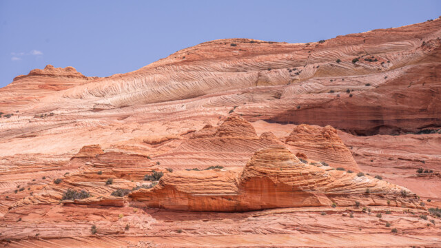 Übrigens, hier gibt es auch The Wave, die wohl berühmteste rot-weisse Sandstein-Formation im Südwesten der USA. Aktuell dürfen zwischen 16 und 64 Personen dieses Naturwunder pro Tag besuchen, bis zu 2’000 nehmen täglich an der Lotterie teil, auch dies ein grosses Geschäft.