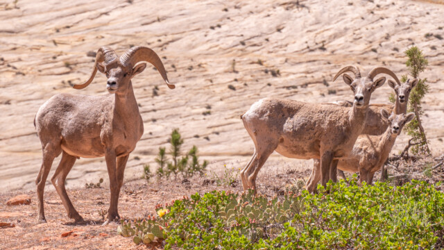 Als wir danach wieder zur Ausfahrt des Nationalparks fahren, sehen wir noch eine ganze Familie von Wüsten-Dickhornschafen, sozusagen als Abschiedsgeschenk.