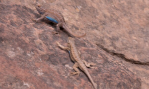 Auf dem Rückweg entdecken wir zwei Eidechsen mit einem blauen Bauch, die umeinander rennen. So wie ich aus dem Internet entnehme, werden sie tatsächlich auch als Blaubauch-Eidechsen bezeichnet. Das Tier kommt im ganzen Südwesten der USA vor – hoffen wir, dass wir sie nochmals sehen und ich noch schärfere Bilder machen kann.