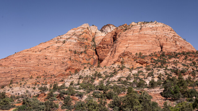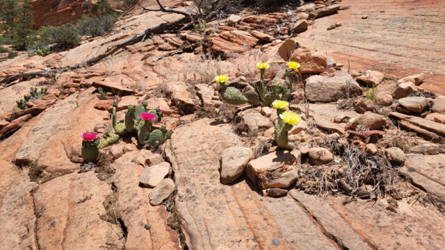 Übrigens darf man nicht mit dem eigenen Fahrzeug in dieses Seitental namens Zion Canyon hinein fahren. Es gibt aber gratis Shuttle-Busse, alle paar Minuten fährt einer, die an vielen Orten halten, eine Supersache.