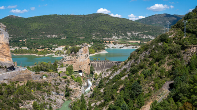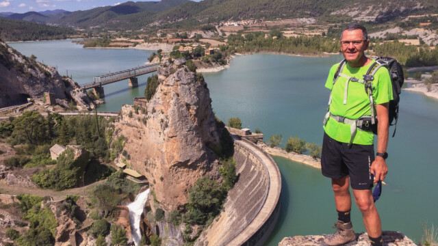 Einer der Höhepunkte war die Durchwanderung der schmalen Schlucht «Foz de Escalate» über eine hohe Steinbrücke, wobei am besten sieht es aus aus Vogelperspektive aus, d.h. hier kam unsere Drohne wieder zum Einsatz. Danach liefen wir einem Stausee entlang und waren erstaunt, wieviel Wasser da einfach «unverstromt» rausgelassen wird. Der See dient wohl hauptsächlich als Wasserspeicher für die Landwirtschaft. Eine Druckwasserleitung sahen wir dann doch noch, sie führt durch den Berg, bevor sie runter in ein Kraftwerk gelangt.