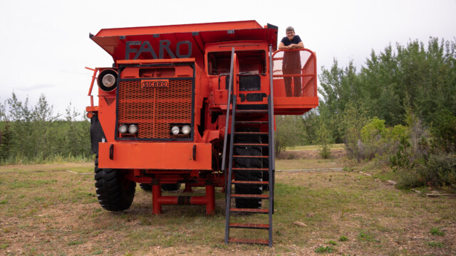 Am nächsten Tag wollen wir das Visitor-Center von Carmacks besuchen, doch es scheint längerfristig geschlossen zu sein, die Fensterläden sind zu und alles ist mit Vorhängeschlössern verriegelt. So fahren wir weiter auf den Robert Campbell-Highway, den wir schon auf der Hinfahrt benutzt haben. Dieses Mal steuern wir noch die Ortschaft Faro an, ein Minenstädtchen, in dem früher Blei und Zink abgebaut wurde und das heute noch rund 400 Einwohner hat. Im Visitor-Center sagt man uns, wir könnten an den Rand der Mine fahren, aber nicht ins Gelände rein. Wir versuchen es, doch schon einige Kilometer vor der Mine kommt ein Verbotszeichen. Gut haben wir eine Drohne…