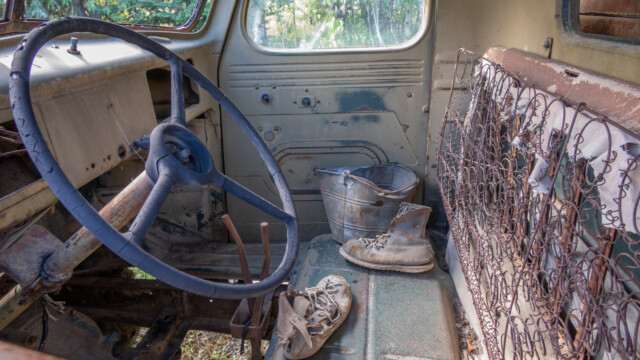 Bevor wir auf diese Piste einbiegen, füllen wir unseren Tank in Ross River noch einmal mit Diesel und fotografieren die Rosthaufen beim Ortsschild. An mehreren Orten der Strasse stehen alte Wracks, oder sollte man Oldtimer sagen, die noch aus der Bauzeit der Strasse stammen. Kurz nach dem Abzweiger besuchen wir den Lapi-Canyon, eine etwa dreihundert Meter lange Schlucht über die eine Stahlbrücke führt.