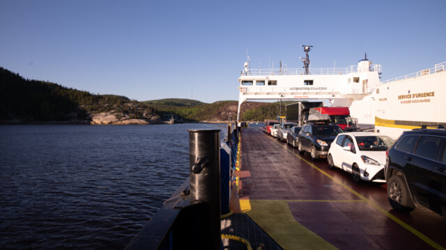 In zwei Etappen fahren wir bis Matane, wo wir den hier über 50km breiten Strom mit einer Fähre in gut zwei Stunden nach Baie-Comeau überqueren.