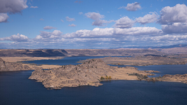 In diesem Tal floss der Columbia River während der letzten Eiszeit, um eine Eisbarriere umfliessen zu können, also bis vor rund 10’000 Jahren. Danach floss in diesem Tal bis in die fünfziger Jahre kein Fluss mehr. Seit 1952 wird Wasser vom Stausee in dieses Tal hochgepumpt und seitdem gibt es hier mehrere Stauseen und Kanäle, deren Wasser weiter im Süden für die Landwirtschaft genutzt wird.