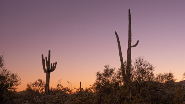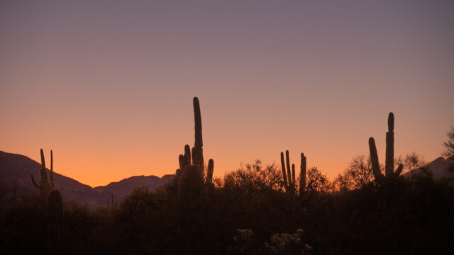 Danach erleben wir einen wunderschönen Sonnenuntergang zwischen all den Kakteen. Schon für dieses Erlebnis hat sich die ganze Fahrerei gelohnt.