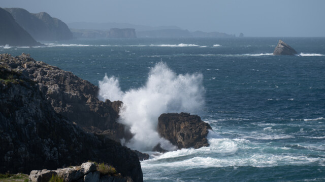 In unserem Führer, aber auch auf der Karte entdeckten wir ganz viele Höhlen in der Küstenregion von Asturien. Wir lernten aus Wikipedia, dass einige davon sogenannte Röhrentunnels sind, d.h. unterirdisch mit dem Meer verbunden sind und dass es bei genügend Seegang sowie der richtigen Tidenhöhe aus diesen Bufones genannten Löchern bis zu 40m hoch spritzen kann. Diese auch Meerwassergeysire genannten Röhrentunnels wollten wir natürlich sehen und bestimmten mit Hilfe des Wetterberichtes den richtigen Tag resp. hatten Glück, dass das Wetter und die Tide stimmte, als wir sowieso da durch kamen.