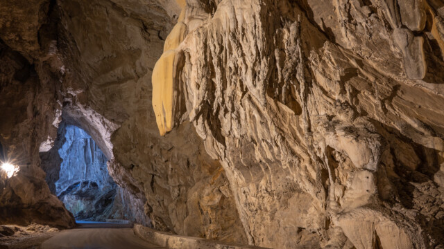 Mit dem Stativ lässt sich auch das Innere dieses Naturtunnels gut fotografieren, Verkehr hatte es fast keinen.