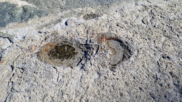 Gemäss Internet hinterliessen die Dinos ihre Spuren beim Durchschreiten von morastigen sowie sandigen Böden und viele glückliche Zufälle führten dann dazu, dass diese Abdrücke versteinerten und für uns heute sichtbar sind.