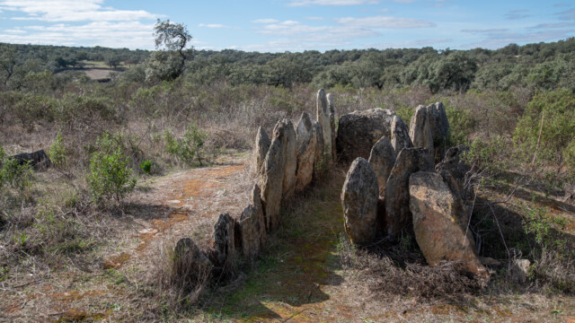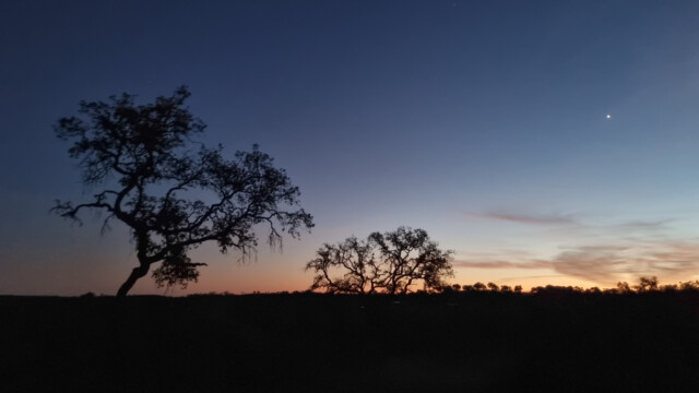 Valverde del Camino scheint eine «Dolmen-City» zu sein, fanden wir doch um die Ortschaft herum an mehreren Standorten ĂĽber ein Dutzend dieser aus unbehauenen Steinblöcken bestehenden Gräber aus vorchristlicher Zeit. Verschiedene davon versuchten wir als Vordergrund fĂĽr die Milchstrassenfotografie einzusetzen, doch da sie sich in der Nacht nur wenig vom Vordergrund abhoben und oft von Bäumen umgeben waren, war es nicht ganz einfach, den Richtigen zu finden und zu einem ansprechenden Bild zu arrangieren.