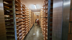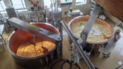 Bei einem Spaziergang durch die Ortschaft entdeckten wir, dass es auch eine Käserei gab. Hier verfolgten wir an einem Morgen von der Besuchergalerie aus die Herstellung von Greyerzer-Käse, sowie in einem kleineren Trog weitere regionale Sorten. Danach konnten wir auch die Vorratsräume mit den vielen Käselaiben besichtigen. Zum Schluss gab es eine Degustation mit hier hergestellten Käsesorten, die wirklich sehr lecker munden.