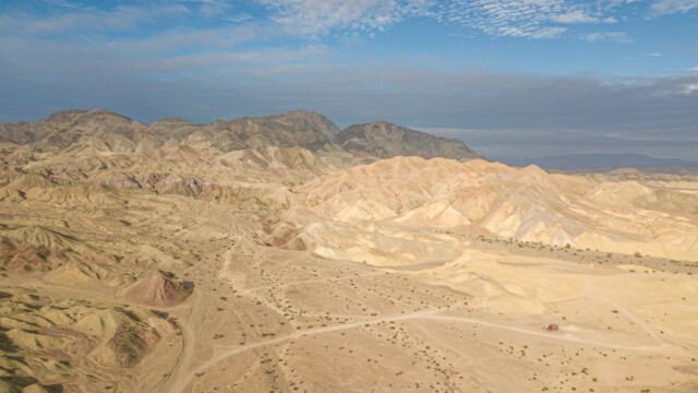 Am Ende der Strasse angekommen, haben wir ein fantastisches Panorama: Einmal sind die Berge rot, dann wieder gelb oder grünlich, einmalig. Natürlich kommt auch unsere Drohne wieder zum Einsatz.