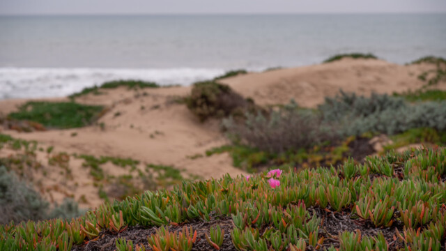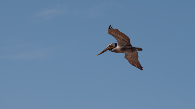 Das Gebiet hier ist sehr hügelig und die Startrampe liegt inmitten von solchen Hügeln. Am nächsten Tag gelingen uns aus der Ferne ein paar Bilder von der Falcon 9 Rakete, wenn auch nur vom oberen Teil. Vorallem bei einem Sandstrand-Spaziergang entlang der Küste können wir sie immer mal wieder zwischen den Hügeln hervorschauen sehen. Es hat aber vom gestrigen Sturm immer noch sehr viele Wellen und sehr viel Gischt in der Luft, zusammen mit dem Gegenlicht schwierig zu fotografieren. Dafür fliegen plötzlich zwei Pelikane vorbei, auch nicht schlecht.