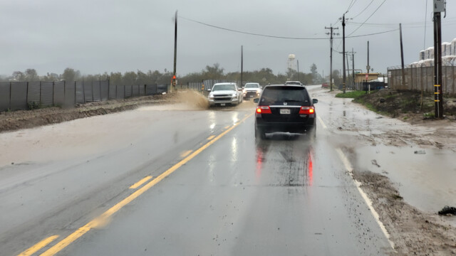 Auf unserer Fahrt zur Vandenberg SFB ist die Strasse an mehreren Orten wegen Überschwemmungen gesperrt. Auch sehen wir immer wieder überflutete Felder und manchmal Hänge, die ins Rutschen kamen. Seit Tagen regnet es hier immer wieder, der Boden scheint komplett durchnässt zu sein.
