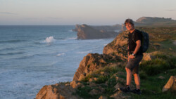Auf der Suche nach einem ruhigen Übernachtungsplatz landeten wir in der Bucht von Minoño. Und hier entdeckten wir eine Brücke, die einfach ins Leere schaute. Sie war in unserer Karte nur andeutungsweise vermerkt und auch in keinem unserer Führer zu finden. Vor Ort fanden wir auf versprayten Informationstafeln die Information, dass hier früher Eisenerz abgebaut wurde und dies die Verladerampe war, um das Erz auf Schiffe zu befördern, sehr interessant. Sogar ein Minentunnel war noch offen und begehbar.