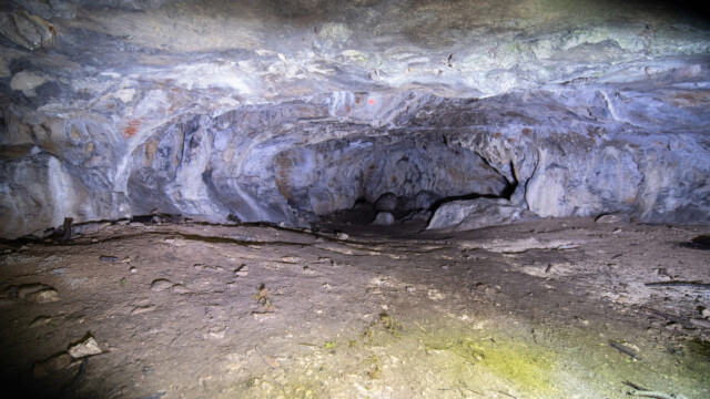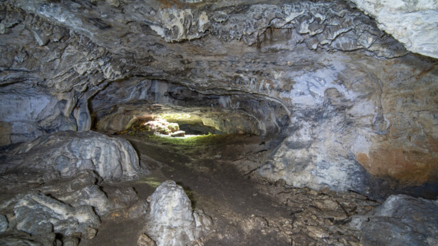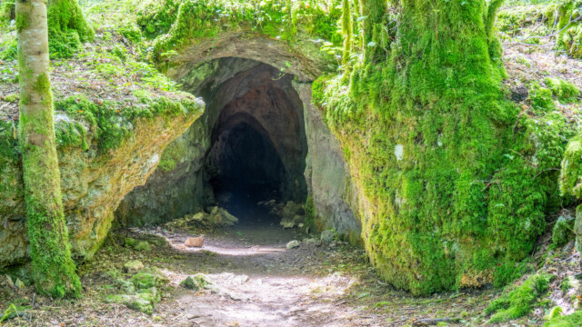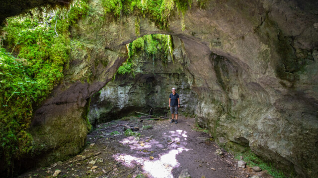 Der Rundweg besteht aus zwei Hälften. Auf beiden Teilen hat es die wunderbar vermosten Felsen und Höhlen, doch die grösste begehbare Höhle entdeckten wir fast am Schluss der zweiten Hälfte: Sie besteht aus vier grösseren Räumen sowie noch weitere kleinen Räume, in die man aber nur mit «durch den Dreck kriechen» reinkam, was wir unterliessen. Zum GlĂĽck hatten wir das Stativ dabei und konnten auch ein paar Bilder vom innern machen, wenn auch nicht perfekt scharf.