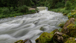 Am Rande der Ortschaft Mouthe entspringt der Doubs und zwar nicht einfach als kleiner Rinnsal sondern er sprudelt schon als mächtiger Bach aus dem Fels. Im Wikipedia steht, dass der Doubs eine mächtige Karstquelle ist und im Schnitt 1’740 Liter pro Sekunde hervorschiessen. Die Quelle sei der Ausgang eines komplexen Höhlensystems mit mehreren Siphons. Interessant ist auch, dass Quelle und Mündung (in die Saône) nur etwa 90km auseinander liegen, der Fluss dafür aber 430km zurücklegen muss.
